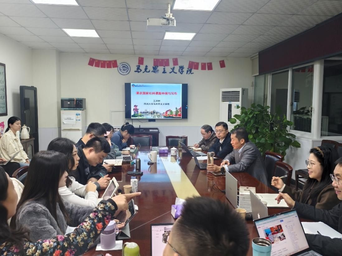 10月28日晚,四川大学马克思主义学院副院长、博士生导师王洪树教授应邀在学院通博楼A220会议室作题为“漫谈国家社科课题申报与写作”的学术讲座。院长陈宗权教授主持讲座,学院青年教师及博士研究生参与交流。