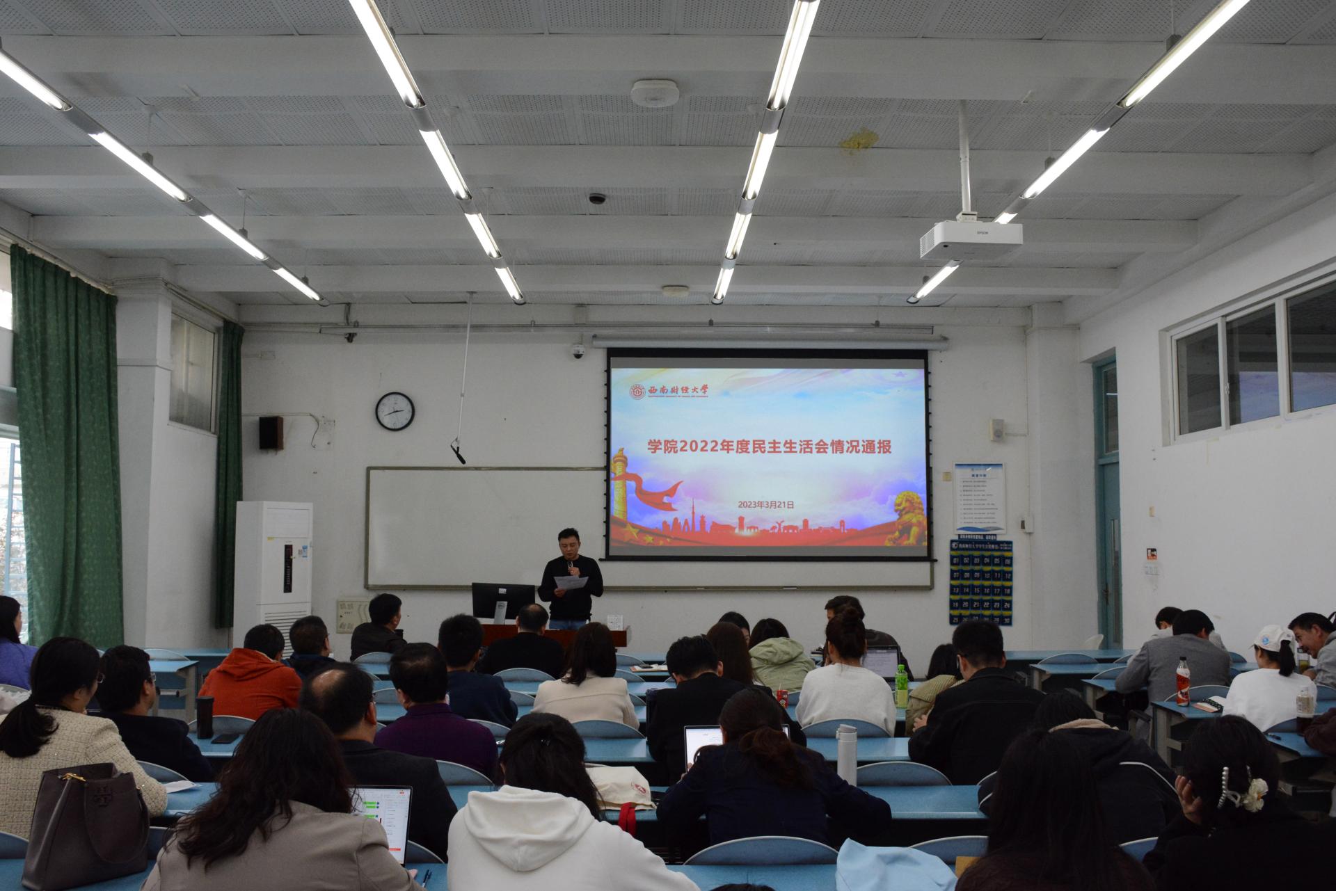 会上,学院党委书记雷栋良通报了民主生活会开展情况。民主生活会是是党内政治生活的重要内容,学院高度重视、认真准备,分管校领导、学校指导组到场指导,学院领导班子进行对照检查,严肃认真地开展批评与自我批评,这次民主生活会的成果得到了学校领导的指导和肯定。会后,学院高度重视会议成果,制定了条目清晰的问题清单和切实可行的整改举措,以实干的方式昂扬的姿态应对问题与挑战。会上,雷栋良对师德师风负面案例进行通报,希望全体教师能够以“明大德、守公德、严私德”的标准严格要求自己,争做“四有好老师”。