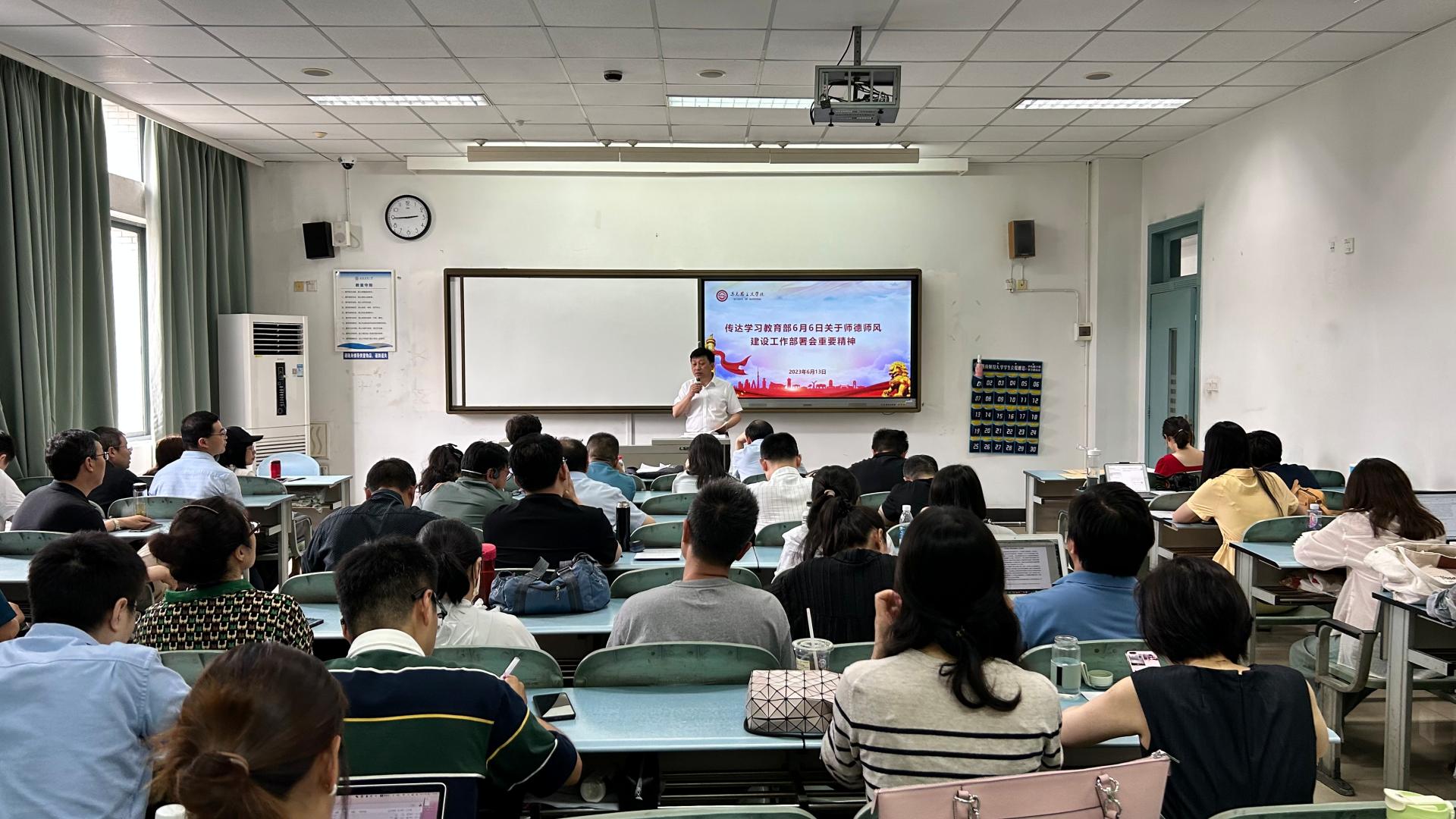 会上,唐晓勇传达了教育部6月6日师德师风建设工作推进暨师德集中学习教育启动部署会重要精神。他指出,师德师风直接影响教师队伍整体素质,关乎立德树人根本任务的落实。要结合深入开展学习贯彻习近平新时代中国特色社会主义思想主题教育,把师德师风建设摆在更重要位置,切实增强广大教师为党育人、为国育才的责任感、使命感和紧迫感。