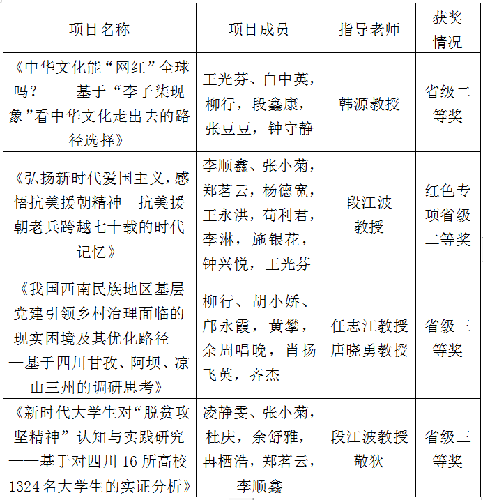 2021年5月22日-24日,四川省2020-2021年度“挑战杯”大学生课外学术科技作品竞赛在四川师范大学成龙校区举行。马克思主义学院高度重视、精心准备,四支参赛团队充分发挥专业优势,以新颖的选题、独特的视角、扎实的材料为依托,在众多比赛作品中突出重围,斩获多项佳绩,分别获得二等奖两个、三等奖两个,成为全校进入四川省2020-2021年度“挑战杯”大学生课外学术科技作品比赛团队中获奖最多的学院。
