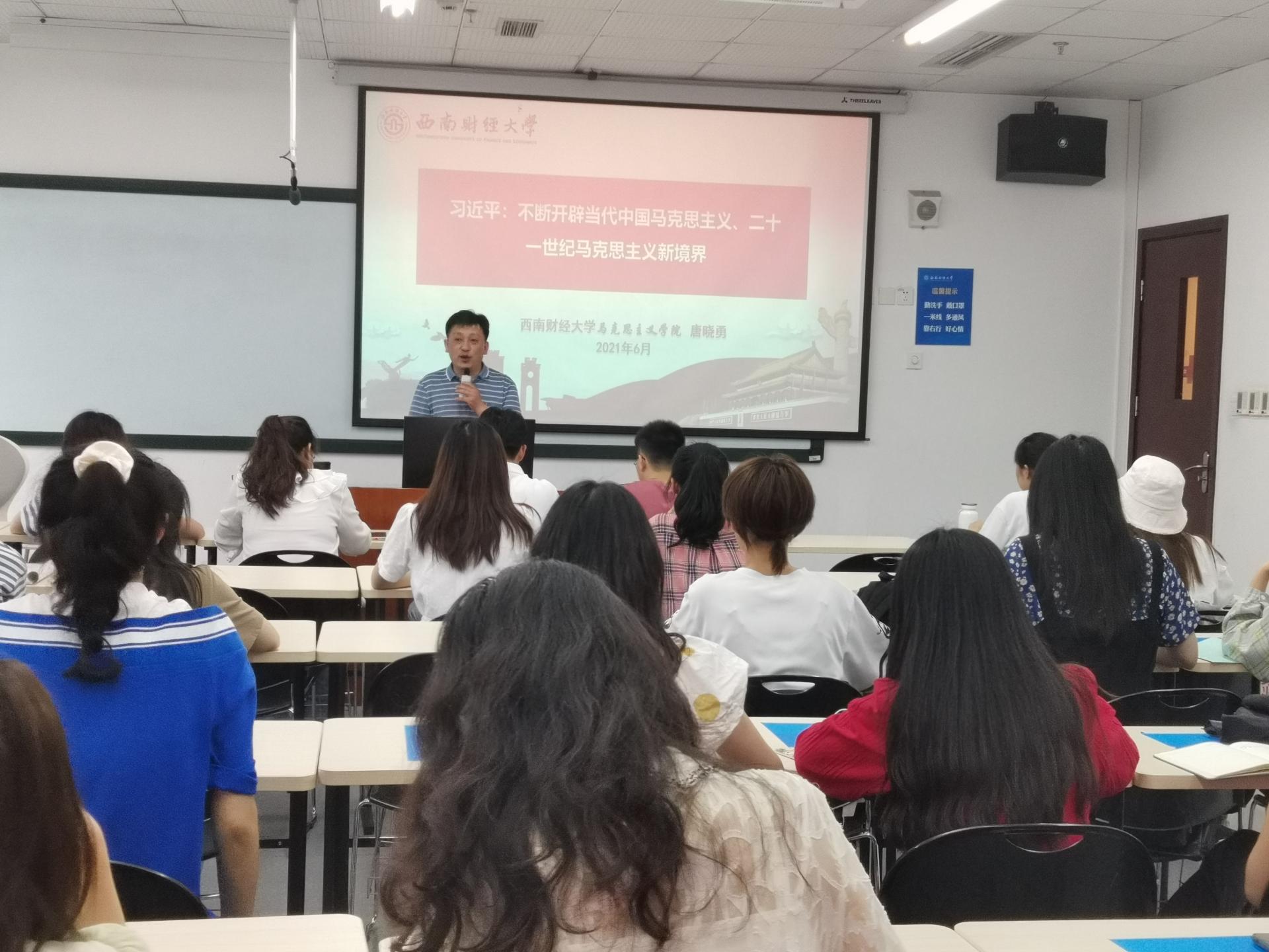 6月15日下午18:30,马克思主义学院院长唐晓勇在格致楼201教室以“不断开辟当代中国马克思主义,二十一世纪马克思主义新境界”为主题给学院2019级学生党员讲授党课。