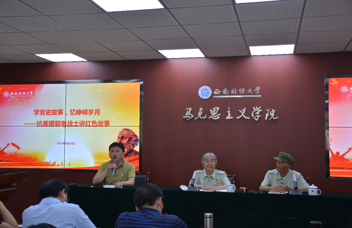 6月22日下午,马克思主义学院在通博楼A117会议室召开教职工政治理论学习会暨抗美援朝老战士红色故事分享会,扎实开展党史学习教育,厚植爱国主义情怀。全院教职工参加会议,马克思主义学院院长唐晓勇主持会议。
