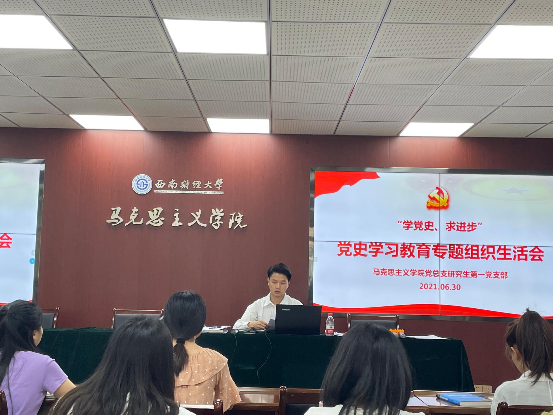 6月30日,马克思主义学院研究生第一党支部在通博楼A117开展了以“学党史,求进步”为主题的党史学习教育专题组织生活会。研究生第一党支部全体党员参与会议,支部书记昌罗主持。