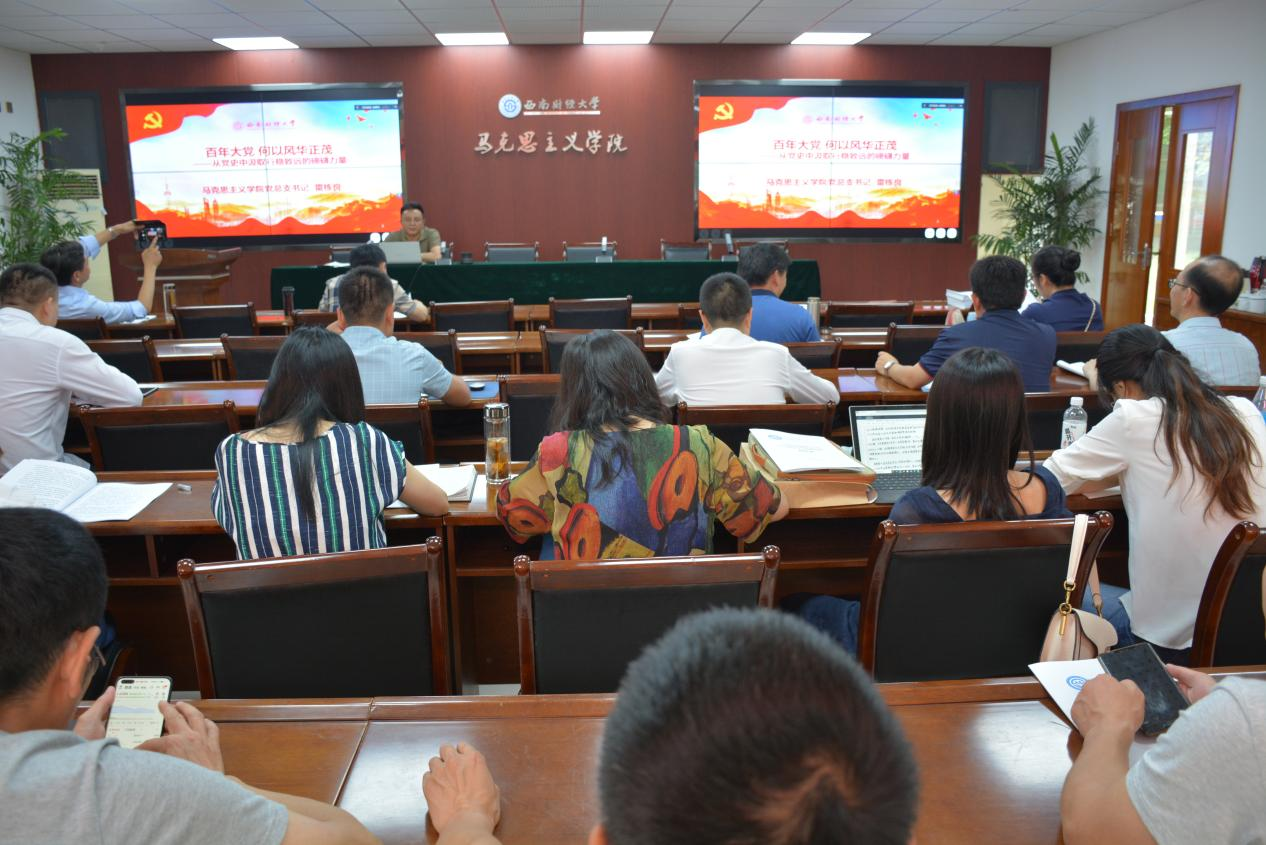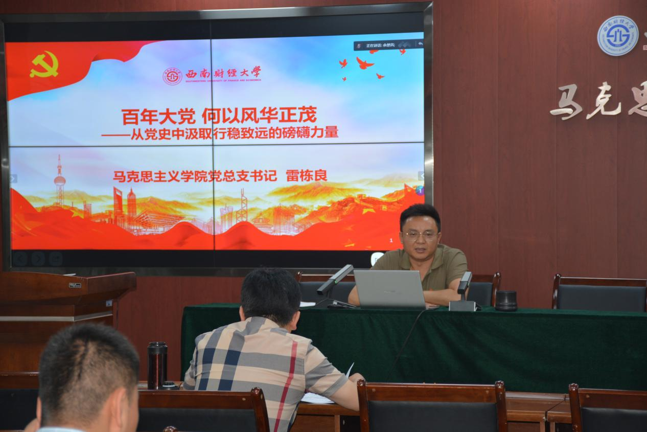 根据学校党委关于二级党组织书记讲专题党课统一部署,7月6日下午,马克思主义学院党总支书记雷栋良在通博楼A117为学院全体教职工讲授了以“百年大党 何以风华正茂——从党史中汲取行稳致远的磅礴力量”为题的党课。
