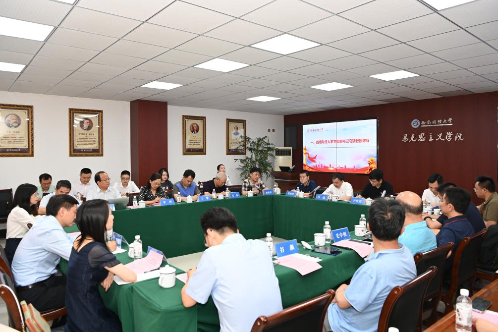 座谈会上,经济学院原院长李萍教授、马克思主义学院全球化与马克思主义研究中心主任韩源教授、中国金融研究中心主任王擎教授、中国西部经济研究中心主任毛中根教授、公共管理学院院长廖宏斌教授、经济学院副院长盖凯程教授、社会发展研究院副院长邓湘树教授、人文学院经济哲学学科带头人谷飙教授、马克思主义学院中国近现代史问题研究所所长李春梅教授、西南民族大学《民族学刊》主编王珏、四川省社会科学院《社会科学研究》编辑陈果、马克思主义学院院长唐晓勇等12位专家学者先后结合自身专业特色和工作实际,交流分享了学习体会。大家一致认为,习近平总书记的重要讲话内涵丰富、思想深邃、催人奋进,是一篇贯通历史、现在和未来,闪耀着马克思主义光辉的纲领性文献,必须全面系统学、深入持久学、联系实际学,力争学深悟透,融会贯通。