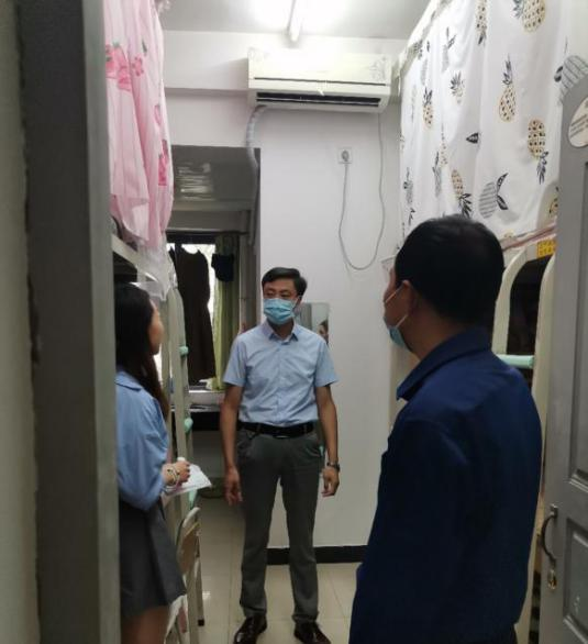 为贯彻落实学校关于新冠肺炎疫情防控工作要求,确保我院老生返校后困有所帮、难有所助、虑有所疏,统筹做好老生返校相关工作,2021年9月6日,马克思主义学院副院长吴玉平、副院长刘世强、辅导员王磊、19级班主任秦慧、办公室主任秦艺萍以及学生干部一行分别走访了2019级和2020级硕士研究生的宿舍。