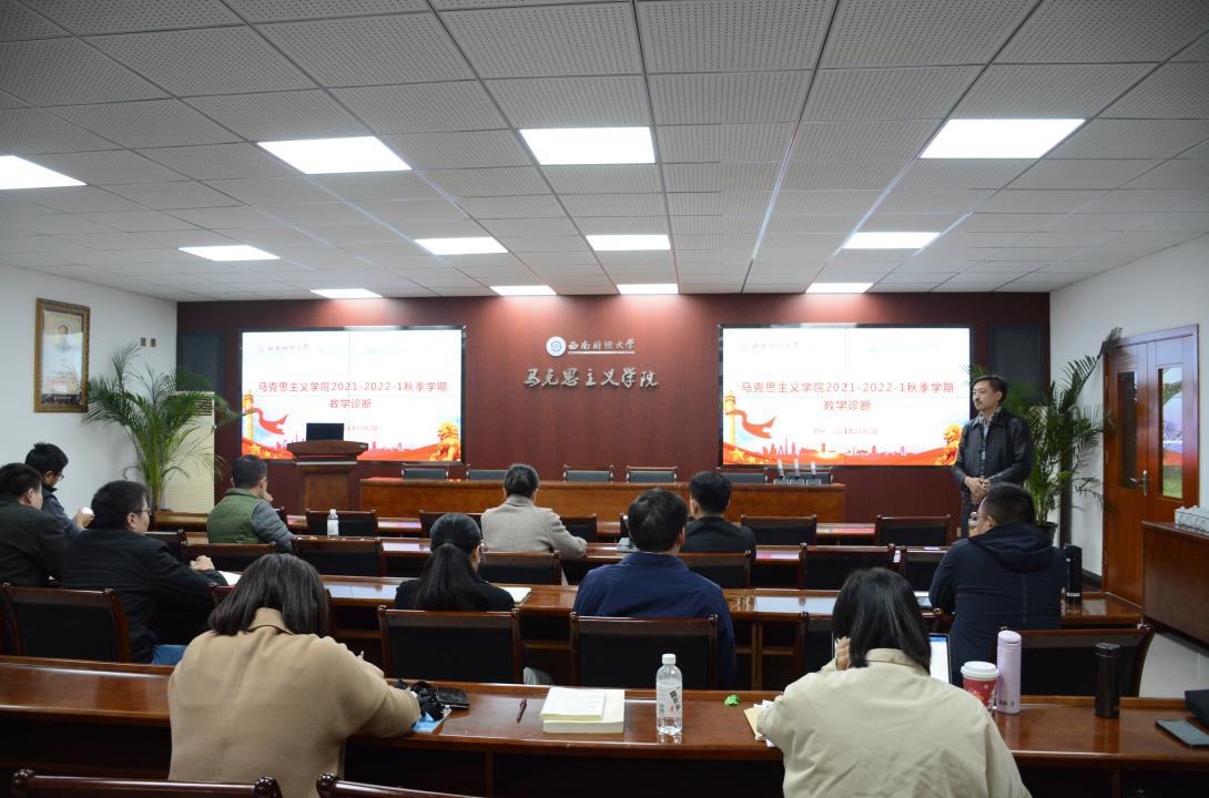 为进一步提高思政课教学质量,落实落地思政课巡视整改任务,2021年11月2日下午,马克思主义学院召开2021-2022秋季学期教学诊断会。学院党总支书记雷栋良、教学诊断专家、五名参加诊断的教师以及学院20余名思政课教师参加诊断会。吴玉平副院长主持会议。