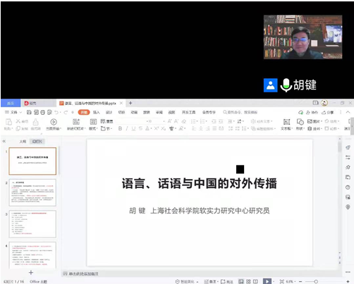 为进一步增进我院师生对中国对外传播特点及其话语体系的认识,2021年12月15日,马克思主义学院特邀上海社会科学院软实力研究中心主任胡键教授作线上专题讲座,讲座题为“语言、话语与中国对外传播”,本次讲座由学院副院长吴玉平教授主持,马克思主义学院部分师生聆听了本次讲座。