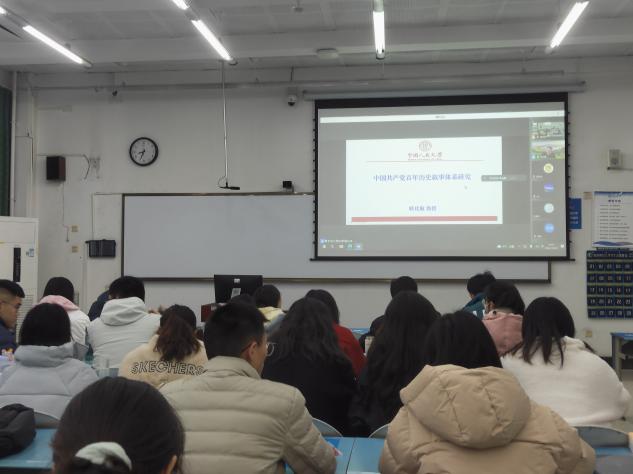 本次讲座耿化敏教授围绕四个方面对中国共产党百年历史叙事体系进行了解读。首先,耿化敏教授从中共党史观的历史演变出发,分析党史观的起源和中共党史编修的四种模式,探究了党史观的演变、趋向和基本结构。其次,耿化敏教授讲述了新时代中共党史观的创新发展历程,阐明了习近平总书记关于党史重要论述的起点,并讲解了新时代党史观的核心文本。再次,耿化敏教授从建构的背景、要义和意义深刻阐述了中共党史百年叙事体系,即一个本源和主题、两大历史性任务、三维一体结构、四个基本阶段和五代共产党人的基本理念。最后,为了让学生更好的理解中国共产党百年历史叙事体系,耿化敏教授强调从理论创新、发展历程、思想要义等方面来把握党史百年叙事体系的要领。