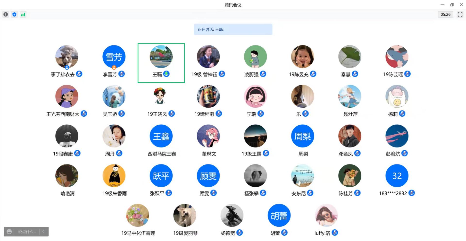王磊首先向同学们介绍了当前成都的疫情防控形势,传达了学校当前疫情防控工作重要指示精神和温江区实施分区管控的要求,要求大家时刻紧绷疫情防控这根弦,严格遵守学校疫情防控要求。其次,王磊要求大家非必要不出校,严格履行报备请假离校手续,不去中高风险区,遵守目的地疫情防控要求;坚持每日打卡,主动、如实报告个人状态,杜绝瞒报谎报;加强个人防护,保持良好卫生习惯,勤洗手,多通风,少聚集,进入公共场所佩戴口罩,积极做好自我监测工作,规律作息。针对未返校同学,要严格属地管理要求,遵守当地疫情防控相关规定。最后,王磊嘱咐同学们要珍惜来之不易的学习时光,合理安排好新学期的学习计划,自主学习,毕业班同学要认真撰写论文、积极就业。