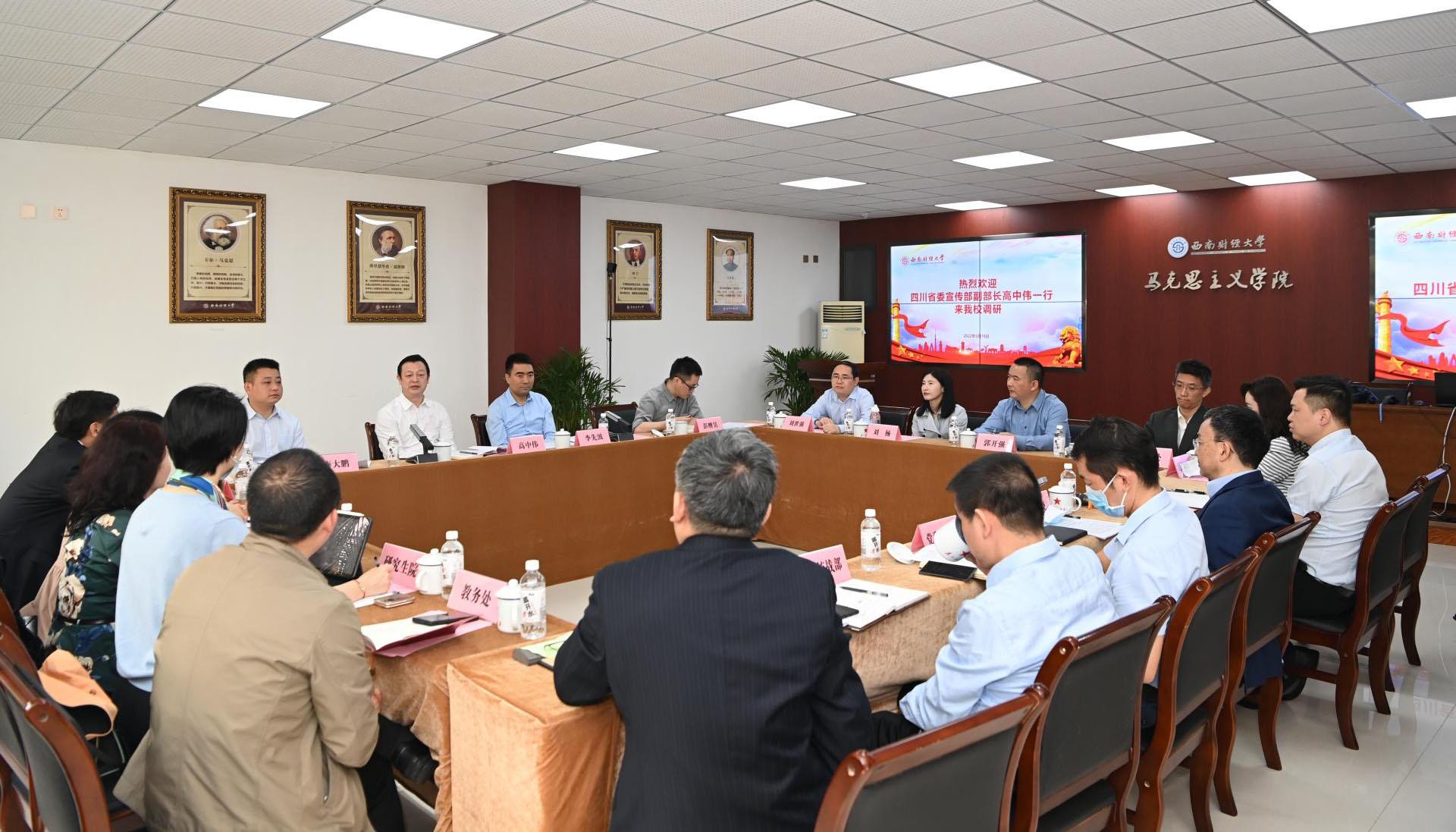 座谈会上,马骁简要介绍了学校党委深入贯彻习近平总书记系列重要讲话精神的具体实践,以及学校党委大力加强马克思主义学院建设的战略考量、着力重点和马克思主义学院入选四川省重点马院以来取得的成效,希望省委宣传部、省教育厅一如既往地给予学校和马克思主义学院建设更多指导和更大支持。