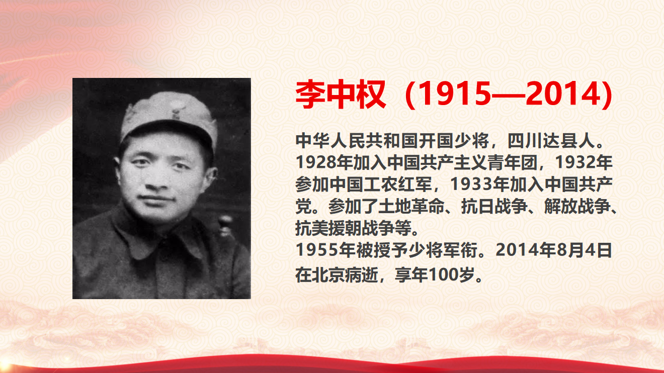 本次党史学习教育以“红军长征在四川”为主题,继上次学习红军长征在四川的8个“最”后,这次由刘少煜同志介绍红军长征在四川的代表人物——李中权少将一家颇具传奇色彩的长征故事。首先,刘少煜同志通过纪录片《山河岁月》对中国共产党领导工农红军创造的人间奇迹进行了丰富的阐述。之后,通过讲述李中权将军的童年经历、父母对其受教育的重视以及父母和兄弟姐妹在长征路上的相继牺牲,展现了共产党人救国救民的信仰,展现了每一位共产党人都坚信自己的奋斗和牺牲必定将为中国赢得一个光明未来的坚定信念。