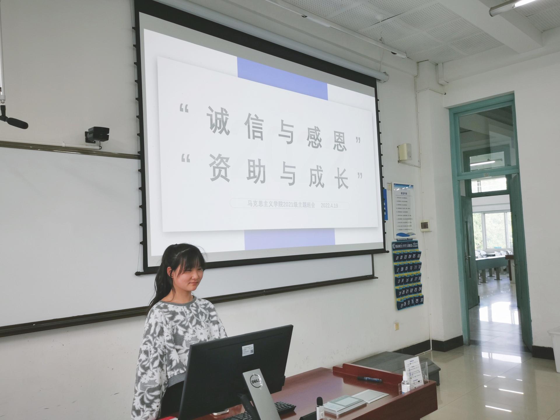 为全面贯彻落实全国全省教育大会精神,积极宣传党和国家的资助政策,落实立德树人根本任务,增强广大青年学生的诚信意识和责任意识,引导青年学生树立正确的世界观、人生观和价值观,着力培养学生社会主义核心价值观和自立自强、知恩感恩、勇于担当的良好品质。我院于2022年5月19日组织开展了“资助政策宣讲、诚信教育主题活动”、“资助诚信宣传标语”等系列活动。活动由21级范琪主持,21级全体成员参加,广大学生热情参与。
