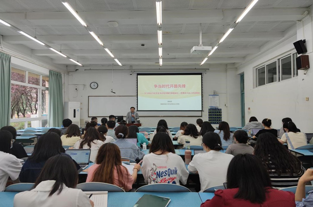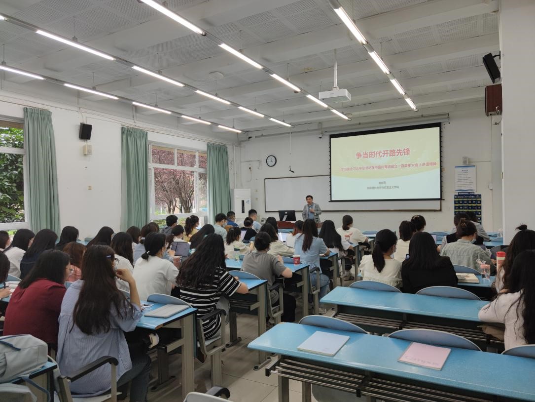 为贯彻落实学校《关于做好2022年春季学期学院(中心)书记、院长(主任)讲授思想政治理论(专题)课工作安排的通知》,5月24日下午,马克思主义学院院长唐晓勇在颐德楼H108为我院学生党员代表讲授题为“争当时代开路先锋”的思想政治理论(专题)课,学院四个研究生党支部党员代表参加学习。