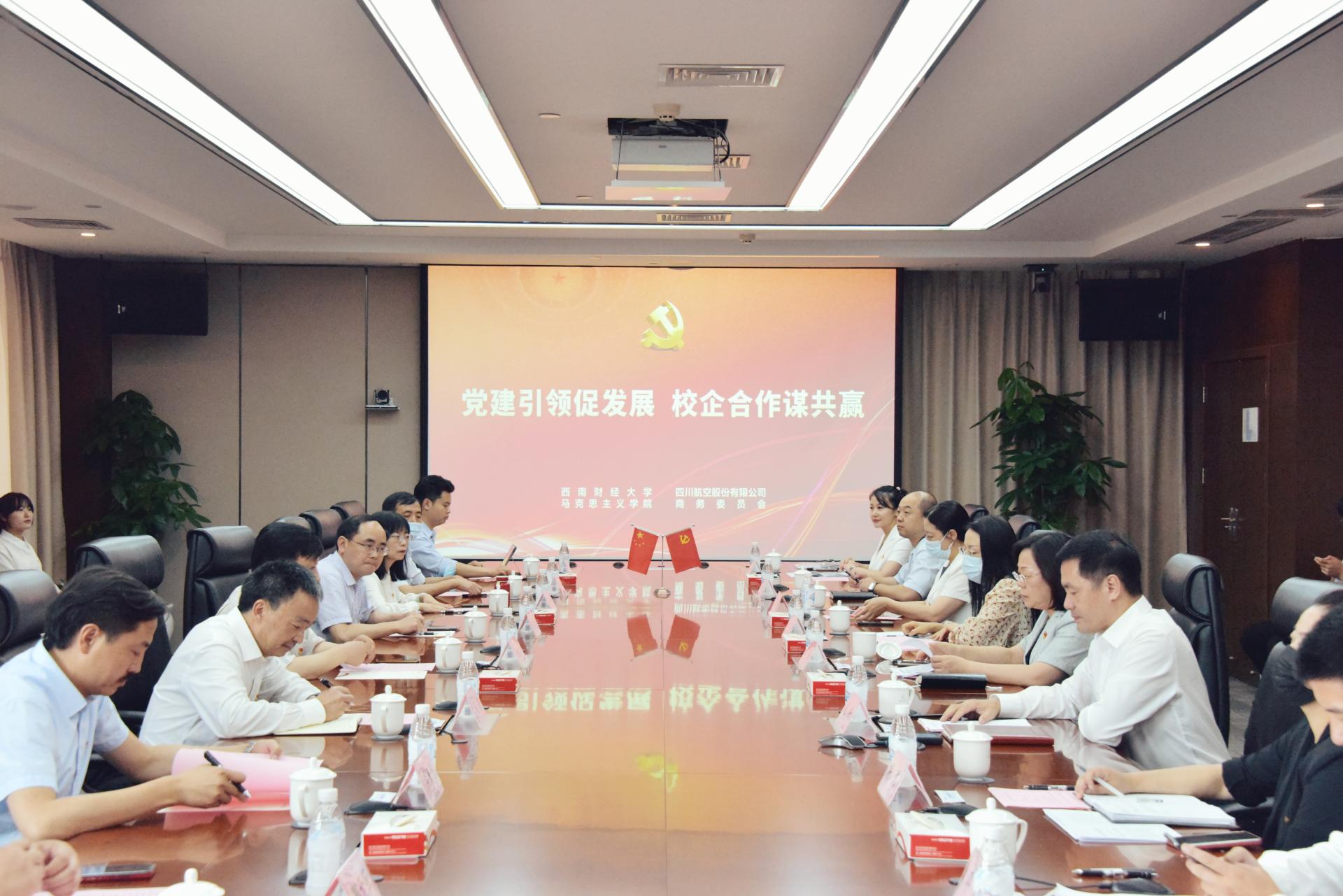 座谈会上,四川航空股份有限公司党委书记赵峰对马骁一行的来访表示热烈欢迎,并介绍了四川航空的公司历史、发展历程、运营情况。他指出,西财作为中国金融人才库,培养了大批治国兴邦、奉献社会的栋梁之材,为社会、为四川航空输送了大量优秀干部人才。希望双方以本次党建共建为契机,拓宽合作领域,发挥各自优势,在党建水平提升、人才培养输送等方面开展多种形式的战略合作,探索产学研深度融合的新路径,努力打造校企党建共建标杆。