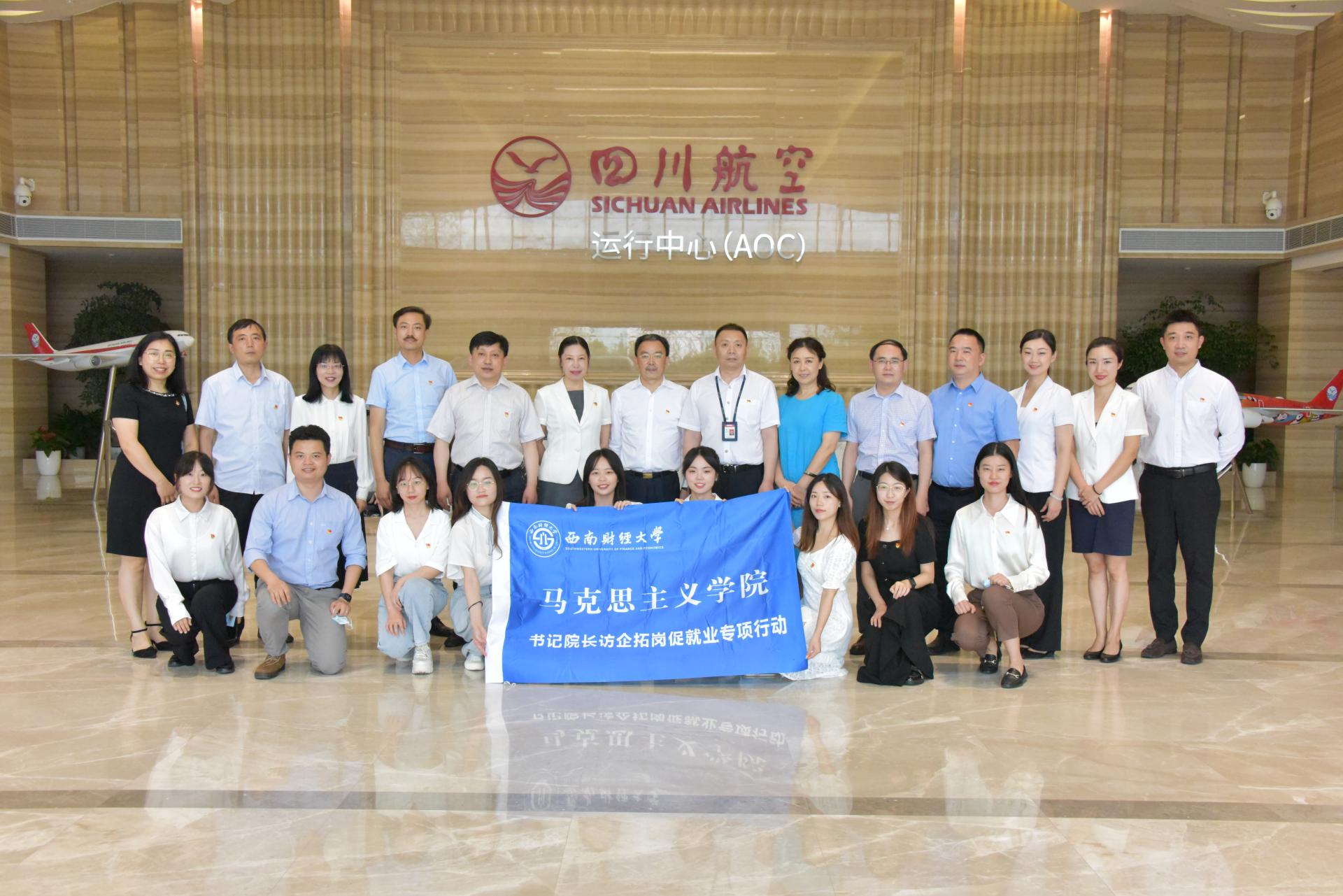 为进一步贯彻落实党中央、国务院关于高校毕业生就业工作的决策部署,推动学校访企拓岗促就业专项行动走深走实,6月16日,学校党委副书记马骁带领马克思主义学院负责人一行走访了四川航空股份有限公司,与四川航空股份有限公司主要负责人及校友代表围绕深化党建引领校企合作进行了深入交流。