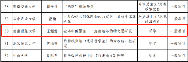 近日,教育部办公厅公布了2022年度教育部哲学社会科学研究后期资助项目的立项结果,共有101个项目批准立项,我院王姗姗老师申报的《破碎中的聚集——海德格尔的物之思研究》获准立项。