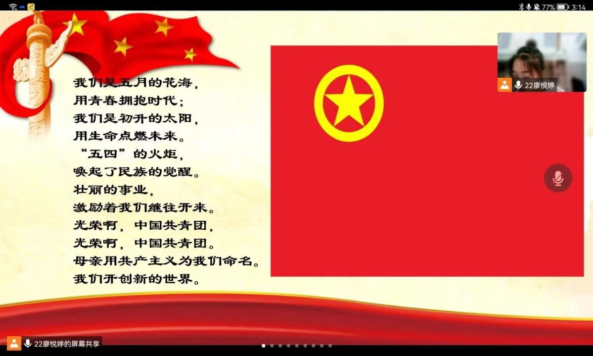 党旗所指,团旗所向。本次线上主题团日活动以全体同学齐唱团歌拉开序幕,进一步激发马院学子作为共青团员的责任感、使命感觉和荣誉感,督促青年牢记初心使命,引导青年砥砺奋进。