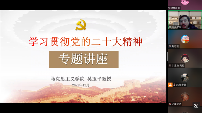 吴玉平教授对党的二十大报告的解读内容丰富、见解精辟、语言生动,既有理论高度,又紧密联系实际,对学院师生学深悟透、全面贯彻落实党的二十大精神具有很强的指导意义。此次讲座在学院师生中引发广泛讨论,大家纷纷表示对党的二十大精神有了更加系统、深刻的了解,对中国共产党新时代新征程的奋斗目标有了更加清晰认识。