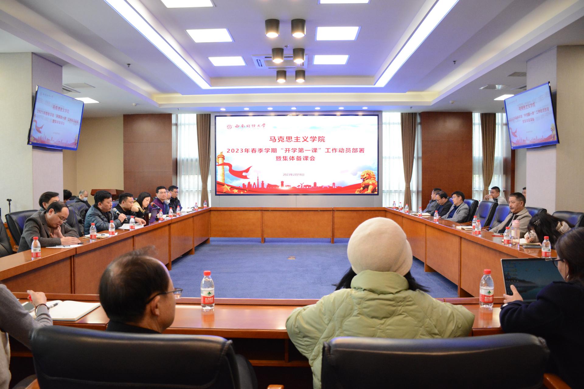 2023年2月18日下午,马克思主义学院在弘远楼109组织召开全院2023年春季学期“开学第一课”工作动员部署暨集体备课会。会议传达了上级有关部门和学校党委关于做好2023年春季“开学第一课”相关精神,开展学院第一次集体备课,部署学院新学期各项工作。院长唐晓勇主持会议。