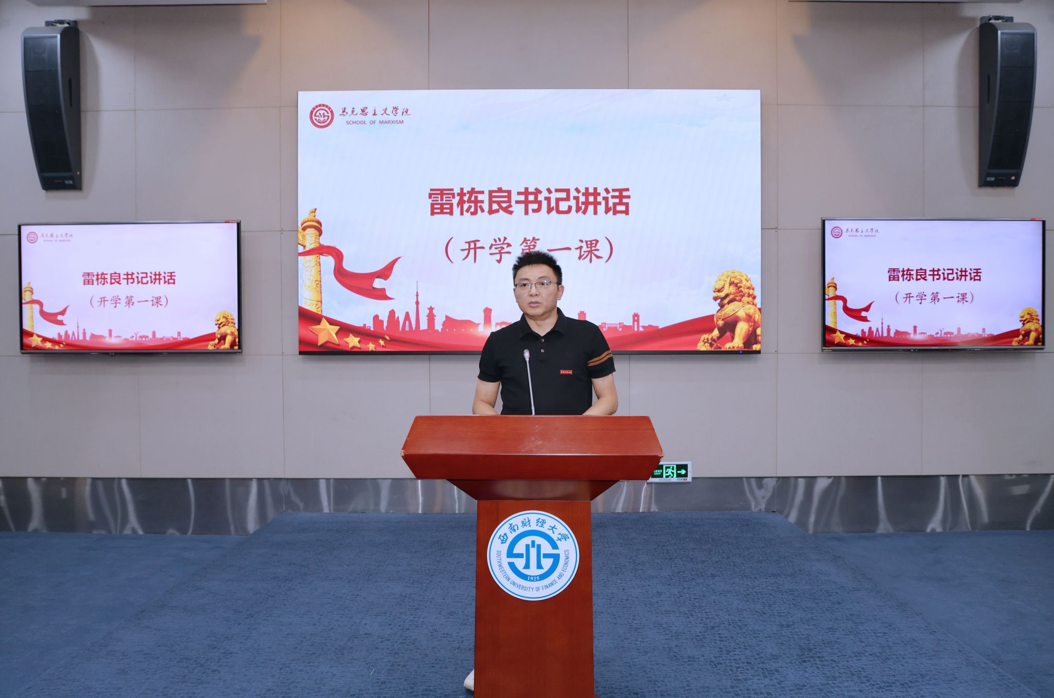 学院党委书记雷栋良以《绘好人生地图 践行核心价值》为主题,为全体新生带来了生动而深刻的“开学第一课”。雷栋良强调,做好人生规划是每位研究生同学必须面对的重要课题,为了引导同学们科学规划人生,他提出五个关键问题引导学生思考:你想没想未来样子?你该不该摆正位置?你能不能找准榜样?你要不要积极坚持?你敢不敢承担责任?他指出,作为西财马院的研究生,应强化“上游”意识,勇于“上游”担当,做出“上游”贡献,不仅在学业上追求卓越,更要在思想引领、社会影响上树立标杆。最后,他寄语同学们珍惜时光,积极行动,马克思主义学院将永远是他们最坚实的后盾。