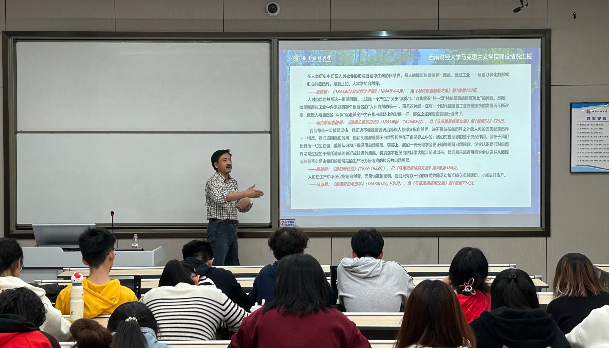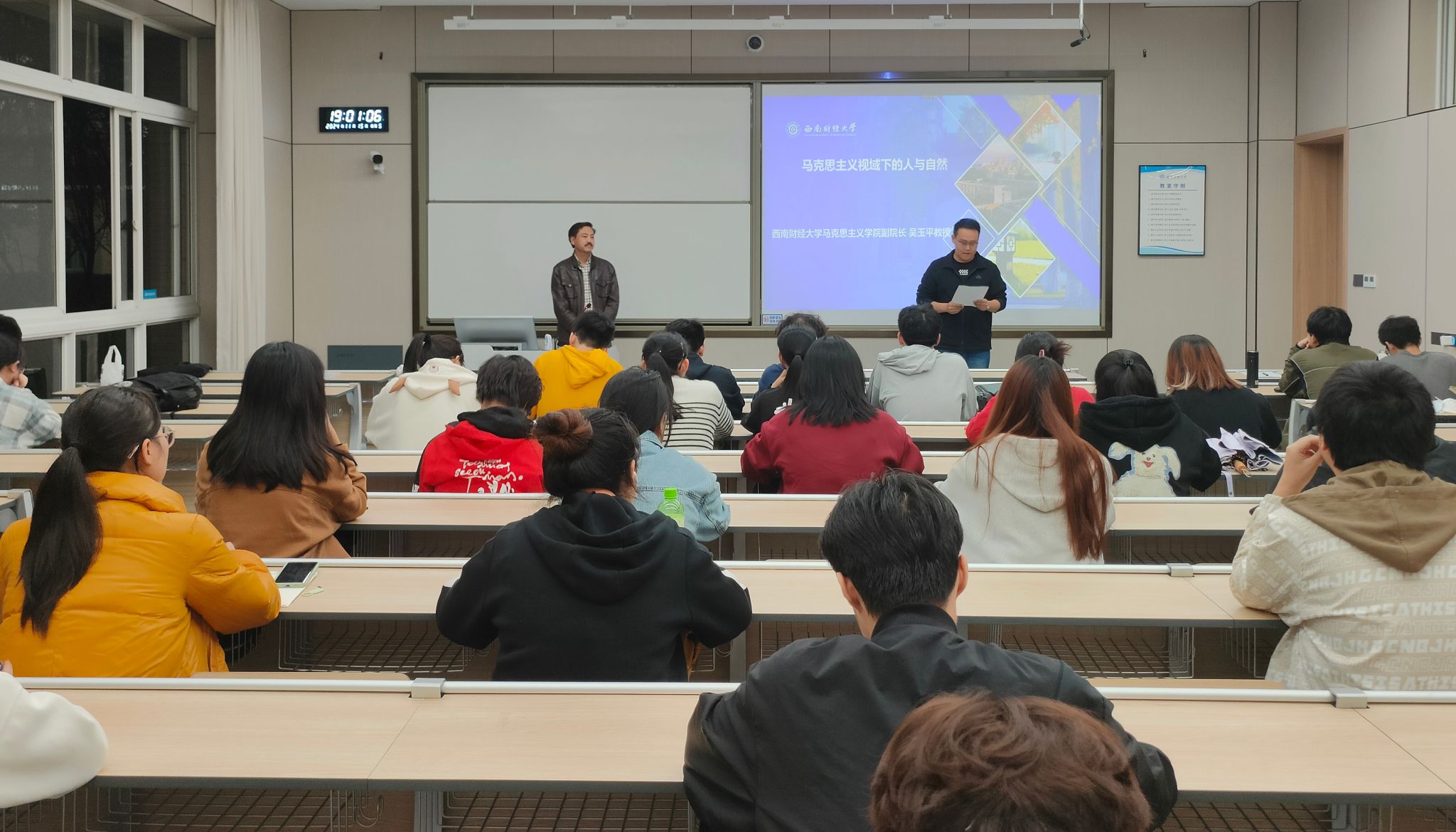 11月15日晚,“马克思主义基本原理”教研室在H108教室举办了本学期第三次实践教学理论辅导讲座。活动由西南财经大学马克思主义学院副院长、博士生导师、四川省思政课名师工作室主持人吴玉平教授主讲,近百名来自全校各专业学生参加了讲座。