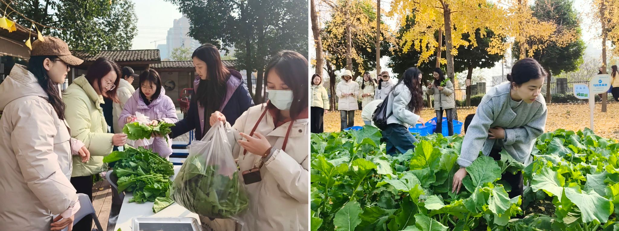 活动中,选修《果蔬种植技能实训》课程的学生们齐聚一堂,参与蔬菜采摘活动。同学们在学院的耕种区域内,满怀期待地采摘着自己辛勤耕耘的成果。采摘结束后,在学校特别设置的 “SWUFE劳动集市”,同学们在摊位上摆满了种类多样的蔬菜,积极地进行现场售卖,吸引了众多师生驻足购买,此举不仅进一步丰富了师生们的校园文化生活,也让大家共同体会了丰收的喜悦。