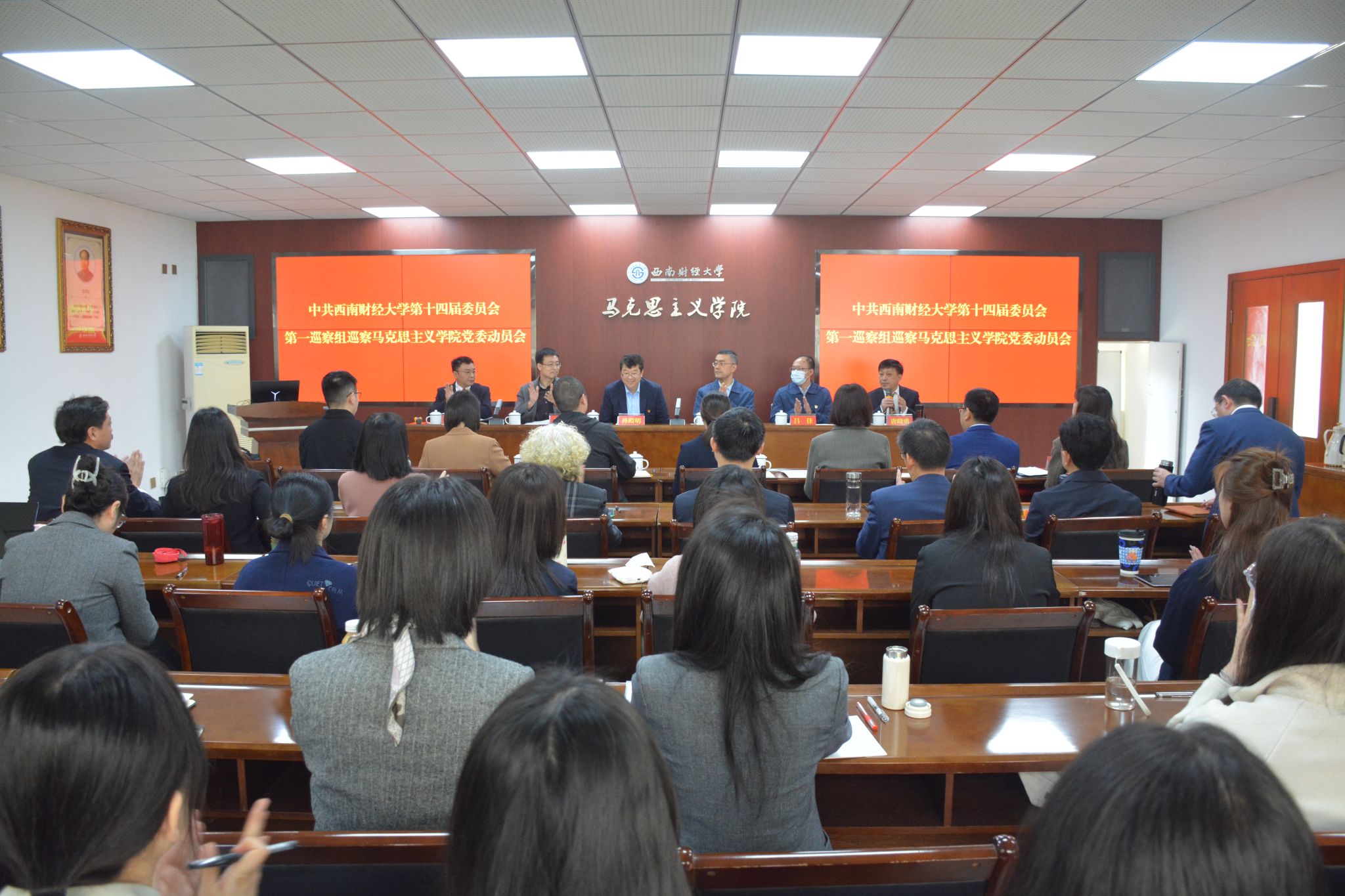 学校第十四届党委第一轮巡察第一巡察组全体成员,党委巡察办公室有关同志,学院领导班子成员、党委委员、教师党支部书记、系所负责人、民主党派代表、校学术委员会委员、党代会代表、“双代会”代表,教授代表、中青年教师代表、离退休人员代表、学生代表等参加会议。
