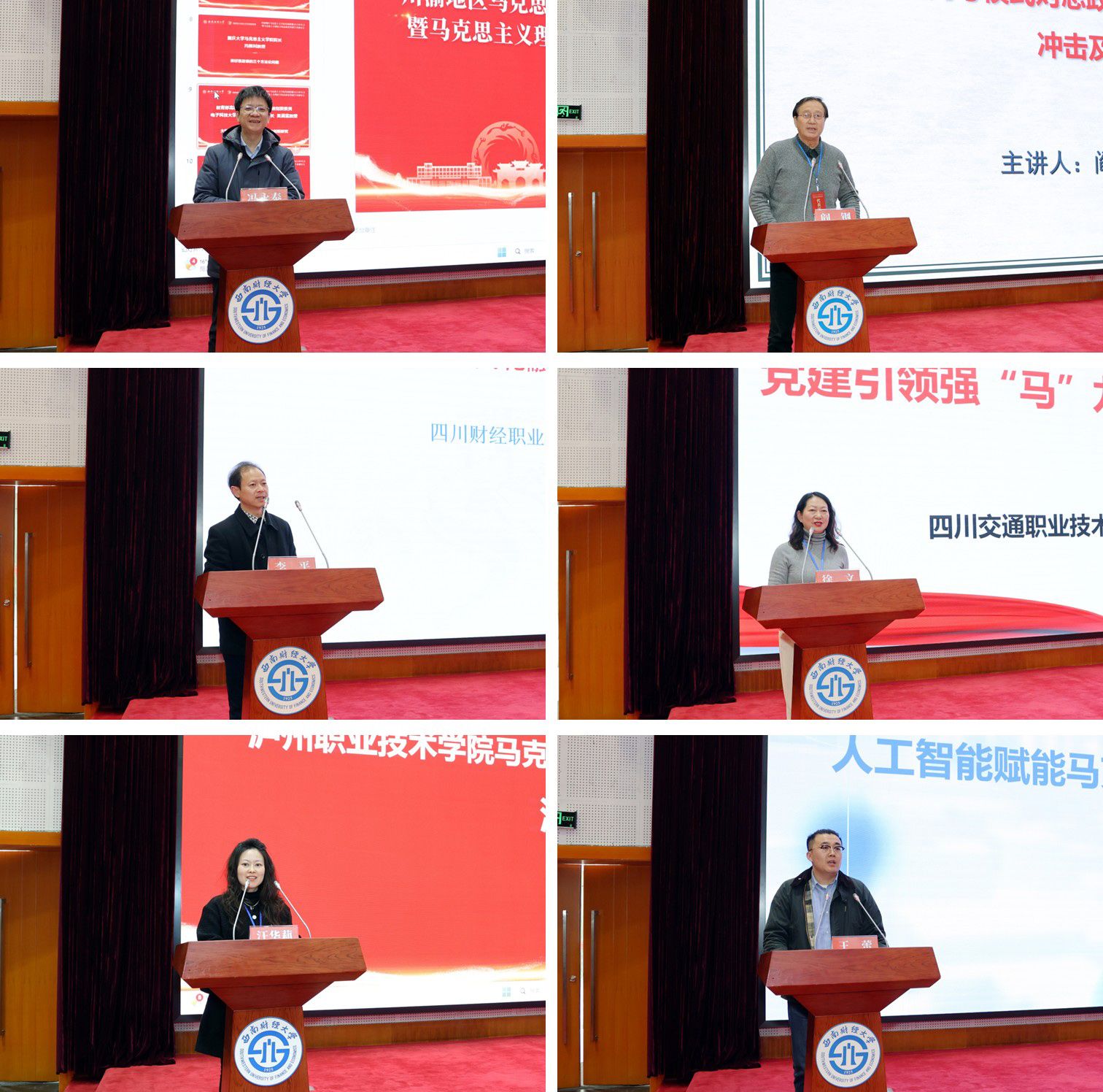 第四环节由西华大学马克思主义学院院长冯永泰教授主持。四川大学锦江学院马克思主义学院院长阎钢教授,四川财经职业学院马克思主义学院党总支书记李平副教授,四川交通职业技术学院马克思主义学院党总支书记徐文教授,泸州职业技术学院马克思主义学院党总支书记、院长汪华莉,四川文投数字文化产业有限公司、五洲融媒体总经理王蕾围绕民办高校、高职院校马院特色发展、人工智能与思政课改革创新等交流发言。