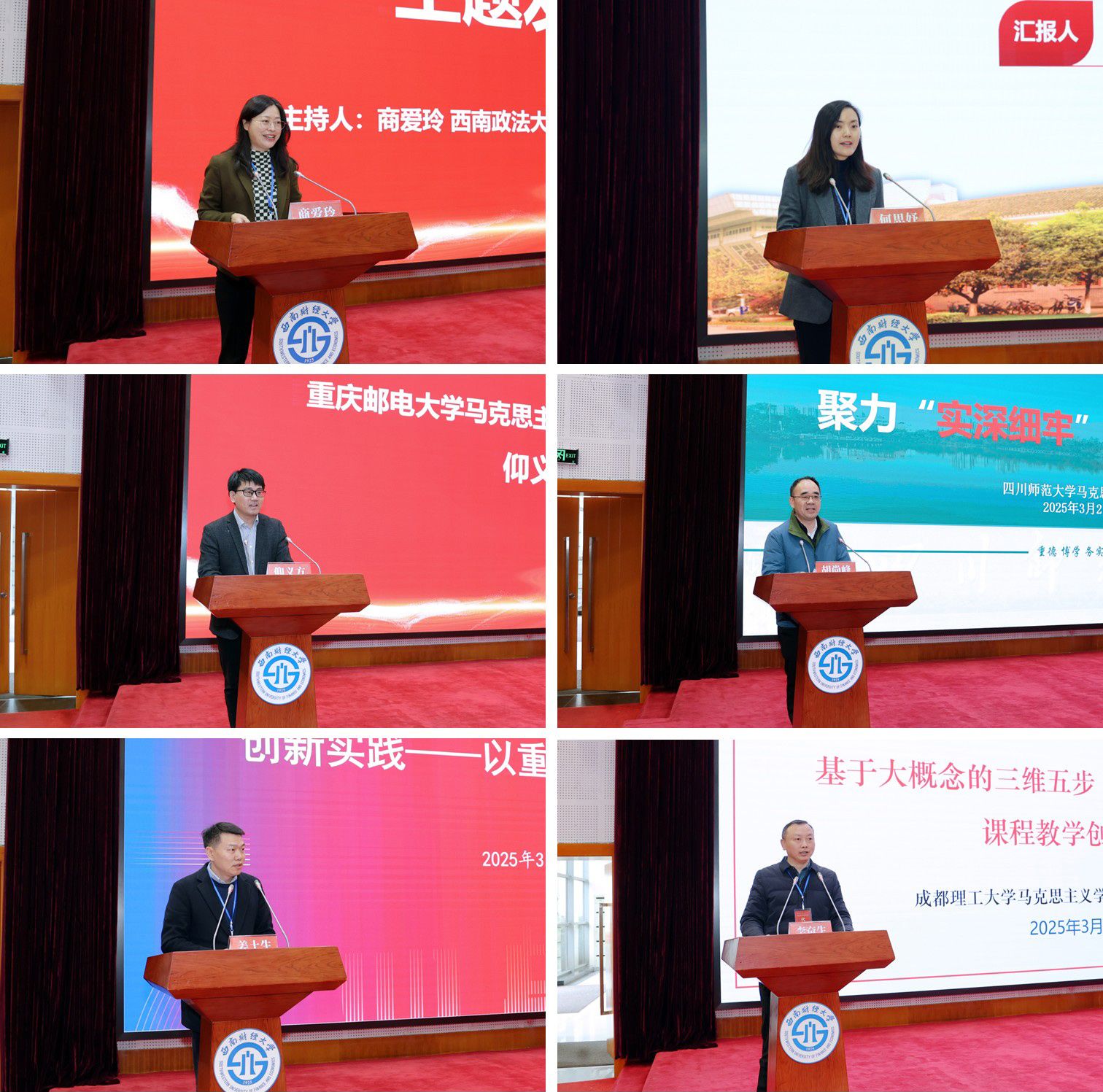 第二环节由西南政法大学马克思主义学院院长商爱玲教授主持。四川农业大学马克思主义学院院长何思妤教授,重庆邮电大学马克思主义学院副院长仰义方教授,四川师范大学马克思主义学院党委书记胡尚峰教授,重庆师范大学马克思主义学院执行院长姜土生教授,成都理工大学马克思主义学院党委书记李奋生教授聚焦思政课教学改革和马克思主义理论学科人才培养模式创新等进行交流发言。
