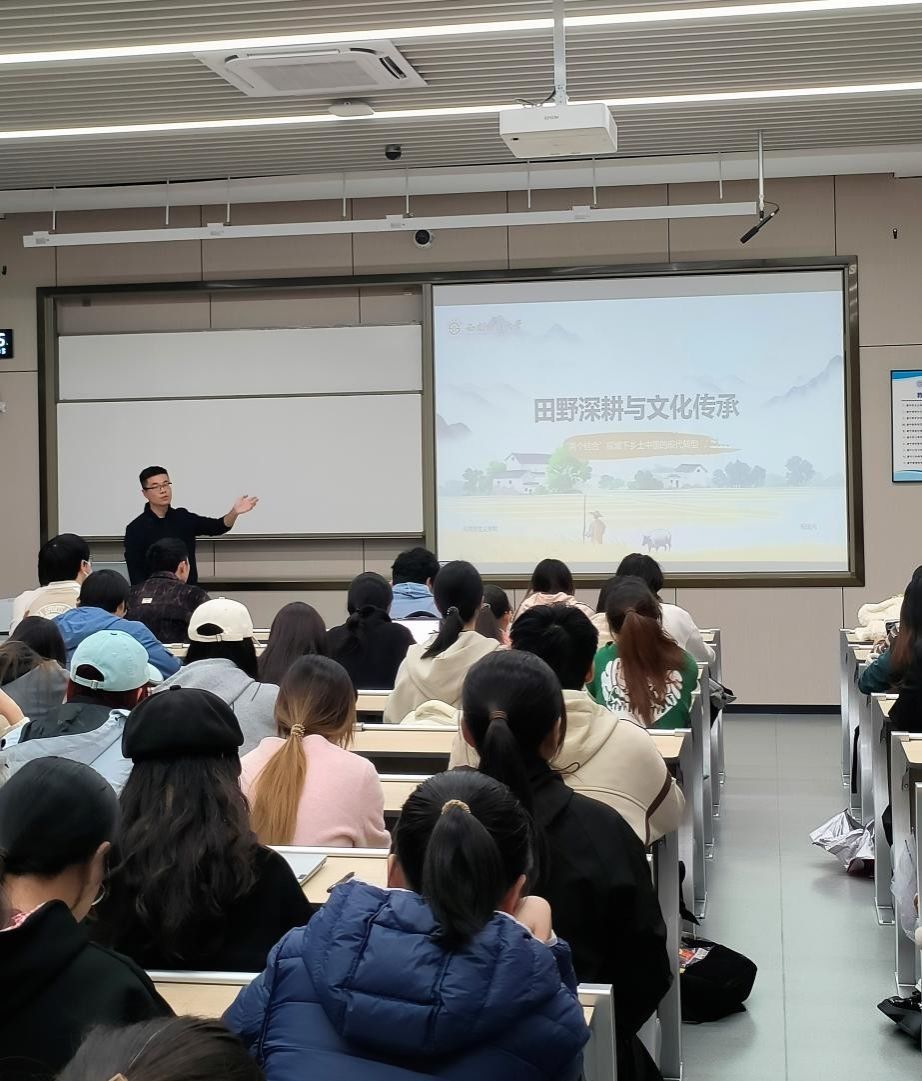 11月14日晚,“马克思主义基本原理”教研室在颐德楼H111教室举办了本学期第四次(总第十二次)实践教学辅导活动暨“六十分钟学与思”系列讲座。讲座由祝佳兴老师主讲,主题为“田野深耕与文化传承——‘两个结合’视域下乡土中国的现代转型”。