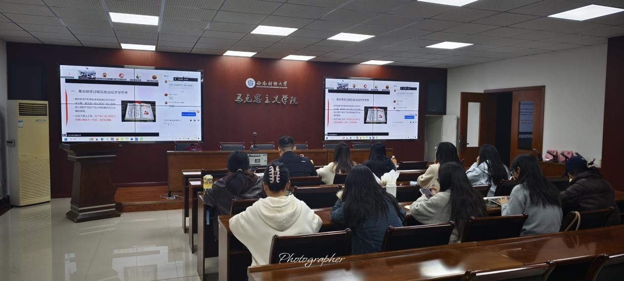11月25日晚,“光华经典读书班”与华东师范大学马克思主义学院“郭大力读书班”联合举办线上读书联谊活动。我院在通博楼A117会议室设立线下会场,敬狄老师、唐教成老师、许鹏老师以及部分研究生现场参与,另有双方读书班数十位师生线上同步参加。活动由敬狄主持,华东师范大学马克思主义学院马立政副教授主讲,主题为“真理的光芒:《资本论》与经济学的思考”。