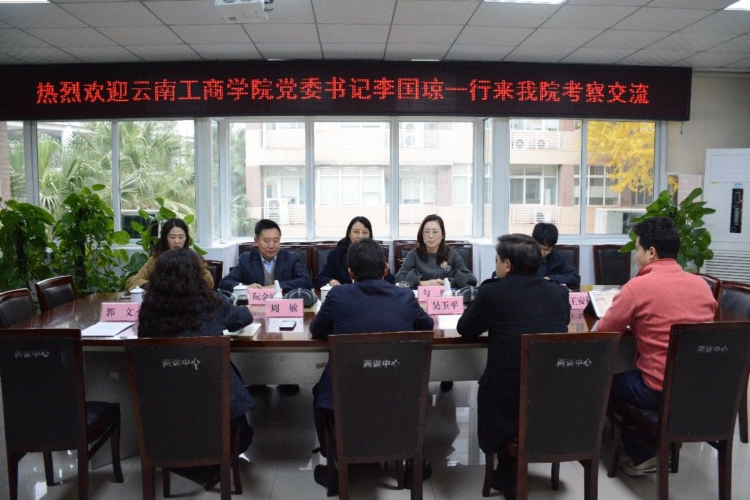2025年12月8日,云南工商学院党委书记李国琼率马克思主义学院骨干教师来学院交流考察。座谈会在学院A220会议室举行,学院院长陈宗权、党委书记周敏等参与交流研讨。