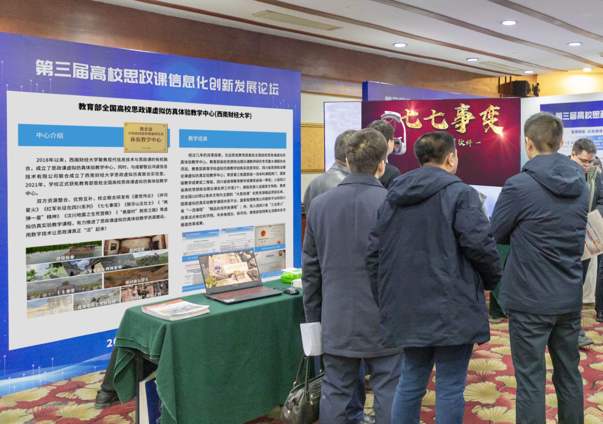 参会嘉宾围观教育部全国高校思政课虚拟仿真体验教学中心(西南财经大学)展区