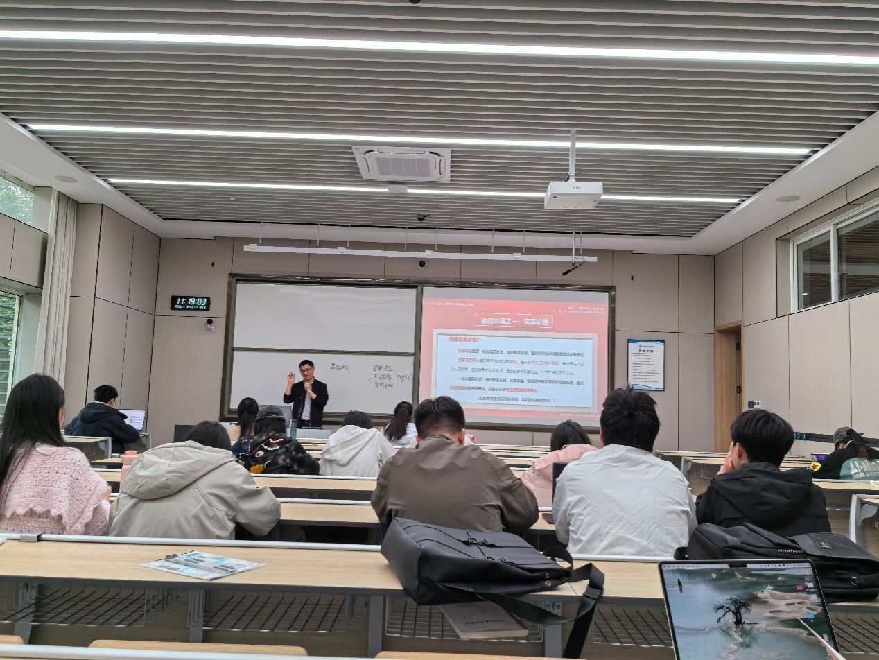 胡建老师讲授的主题是“毛泽东思想活的灵魂”,他分别讲解了活的灵魂实事求是和群众路线。胡老师从理论维度、历史维度、实践维度三个方面出发,结合中国共产党在长征途中的历史与当代红旗渠的修建等案例,深刻阐述了实事求是、群众路线的内涵与现实意义。