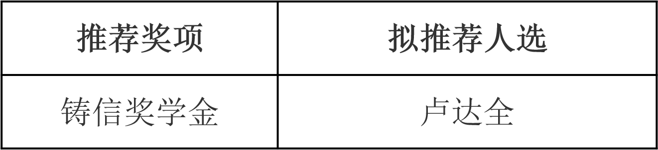 根据西南财经大学《关于2022-2023学年部分校外奖学金评选工作的通知》的要求,本着“公开公平公正”的原则,在学生个人自主申报的基础上,经过公开展示答辩、学院评审小组评审、集体讨论决定,马克思主义学院2022-2023学年铸信奖学金拟推荐人选公示如下: