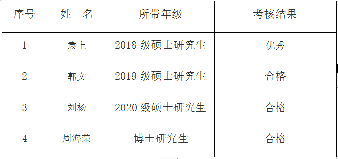根据《西南财经大学青年专任教师担任辅导员或班主任管理办法》(西财大党发[2017]31号)要求,马克思主义学院党总支对周海荣 、袁上、郭文、刘杨四位青年教师2020-2021学年班主任工作进行了严格考核,结果如下: