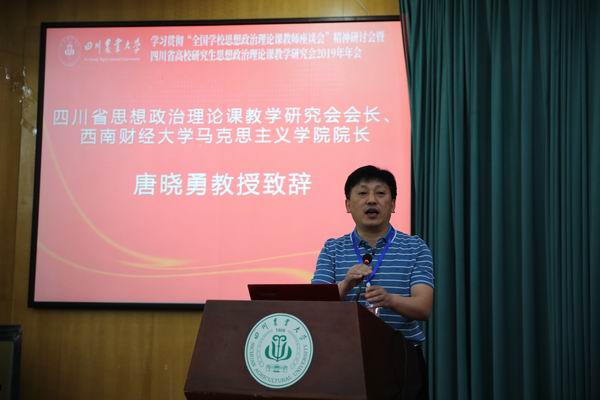 2019年6月22日,由四川省高校研究生思想政治理论课教学研究会主办、四川农业大学马克思主义学院承办的学习贯彻“全国学校思想政治理论课教师座谈会”精神研讨会暨四川省高校研究生思想政治理论课教学研究会2019年年会在四川农业大学举行。